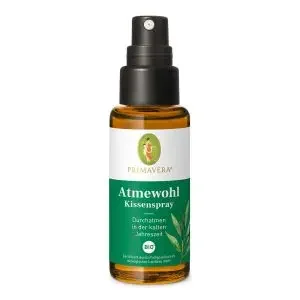 Das Atmewohl Kissenspray bio nutzt die Kraft hochwertiger Bio-Pflanzen und vereint eine harmonische Duftkompo-sition aus Eukalyptus globulus, Fichten nadel und afrikanischem Weihrauch. Besonders in den kalten Monaten fördert dieses Spray ein angenehmes Durch-atmen.